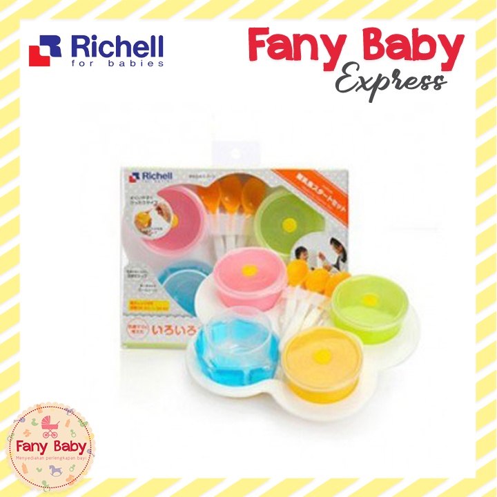 Richell UF Weaning Starter Set tempat makan bayi dengan set warna-warni yang menarik yang akan membuat bayi senang pada waktu makan.