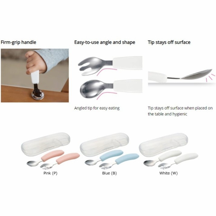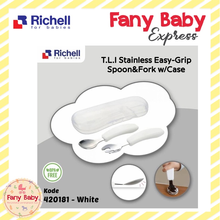 Ibu & Bayi > Peralatan & Aksesoris Makan > Peralatan Makan Bayi > RICHELL TLI STAINLESS STEEL EASY-GRIP SPOON & FORK WITH CASE / R-420179/80/81
