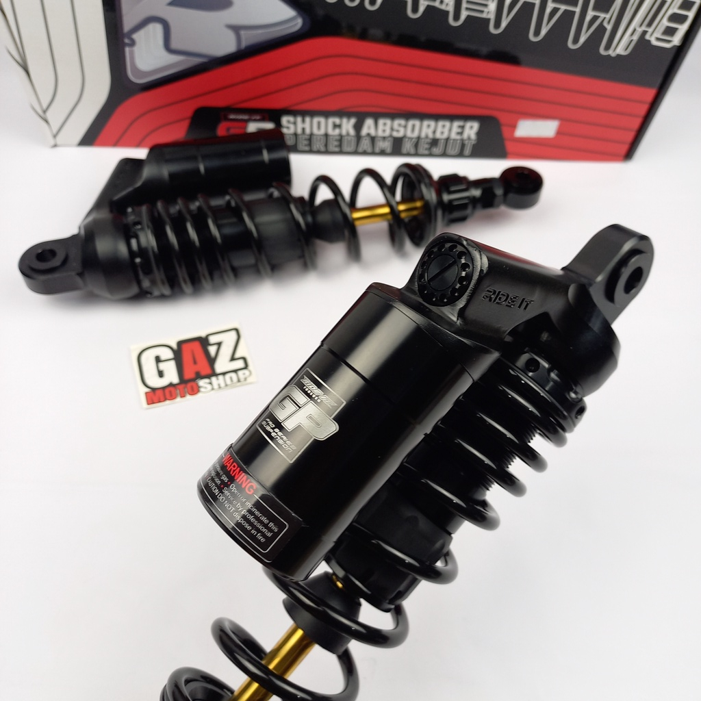 Otomotif > Suku Cadang Motor > Shock, Strut, & Suspensi Motor > RIDE IT Shock Tabung GP-299 Black As Gold 280 320 340 360 mm Shockbreaker Skok Bebek Fiz R Vega Jupiter Supra X RX King CB GL MP