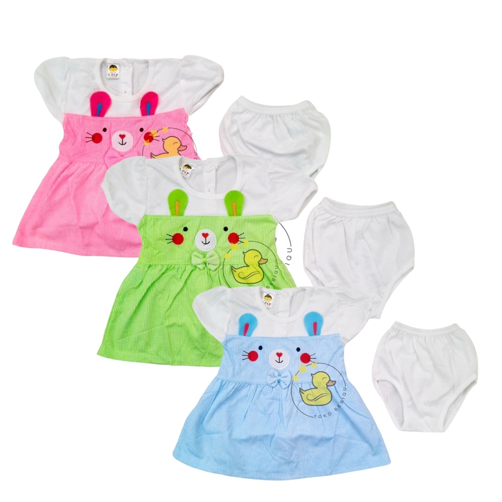 Dress Pendek Bayi Bunga Sweet Bunny Rifky 0-6 Bulan DS01