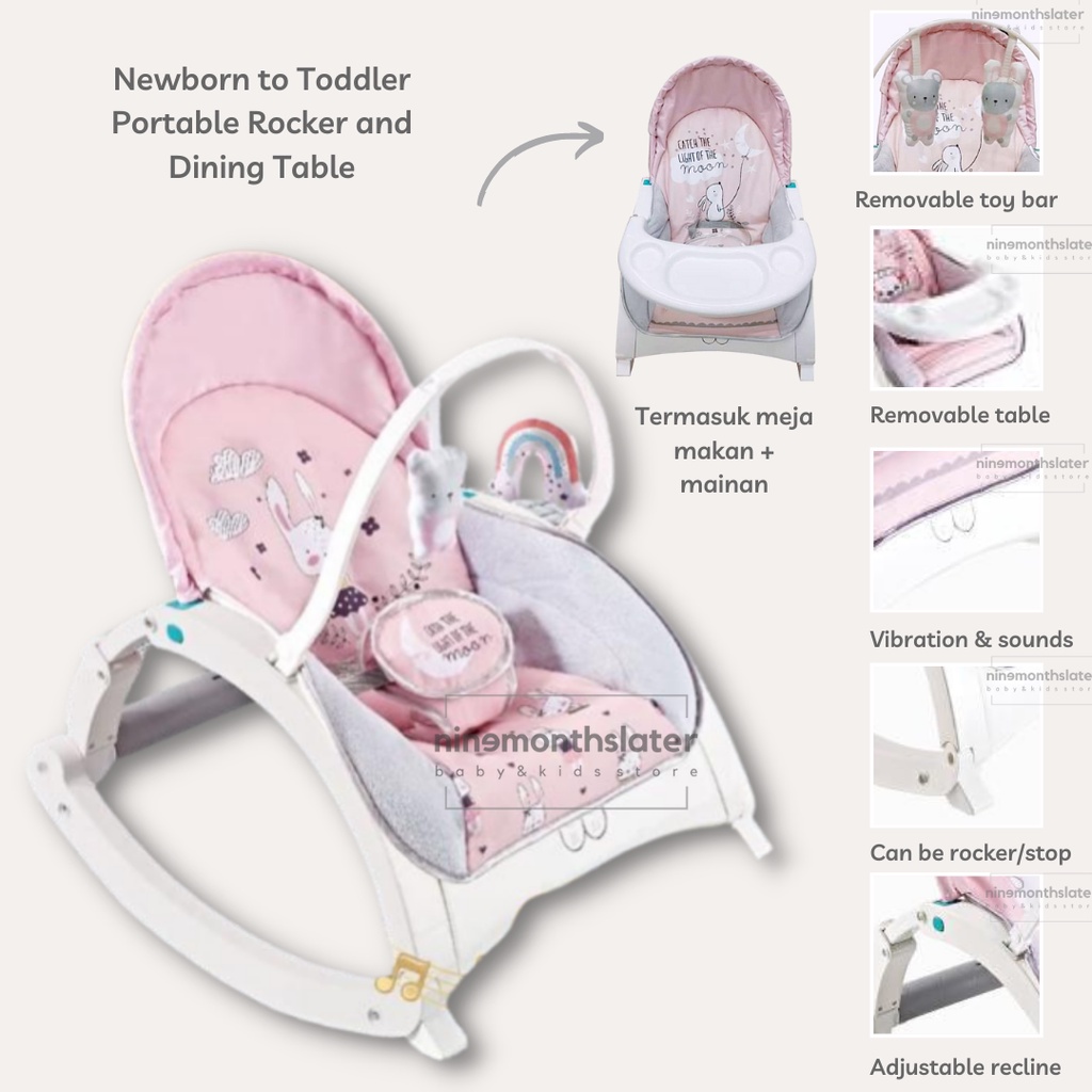 Detail Right Start 2-in-1 BOUNCER DINING TABLE Ayunan Musik Lagu Vibration Anak Dengan Meja Makan Rocker Musical Toy