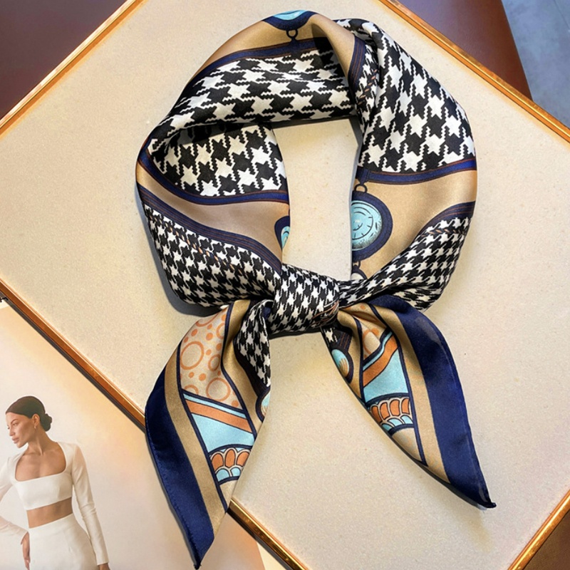 Detail "Rihana" 70x70 cm, Scarf Leher, Scarf Tas, Bahan High Grade Silk Immitation