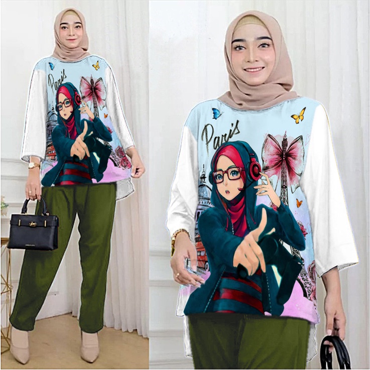 Pakaian Wanita > Set > Set Wanita > RILLO - ONESET CELANA ATASAN OVERSIZE WANITA HIJAB PARIS