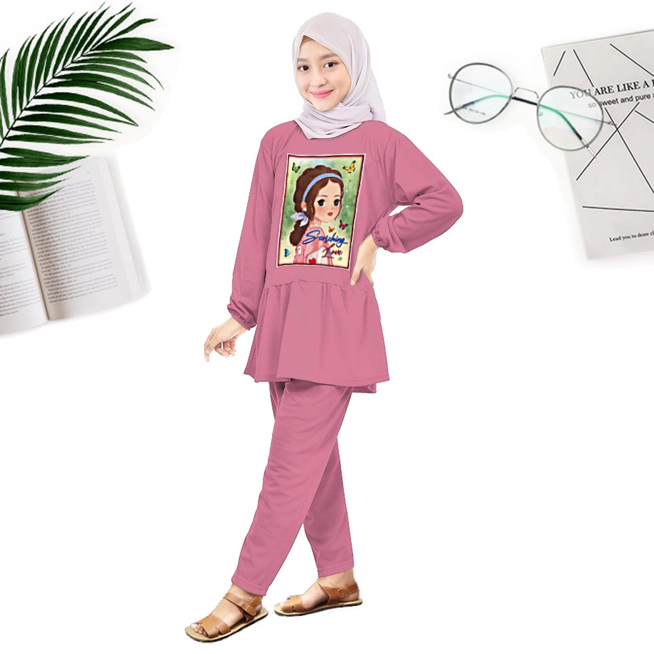 SIZE 16 (11-12 THN) LINGKAR DADA : 92 CM PJG BAJU : 74 CM LINGKAR PINGGANG : 88 CM PJG CELANA : 77 CM