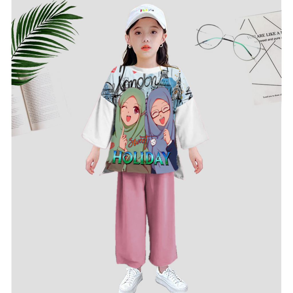 Detail RILLO - Setelan Slebew Anak Perempuan Viral Print Holiday Usia 6-10 tahun