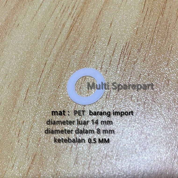 material : PET warna hanya putih Import ( HIGH QUALITY) ukuran : diameter luar 14 mm diameter dalam 8 mm tebal 0.5 mm