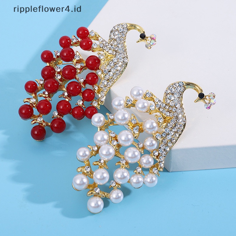 Detail {rippleflower4.id} Bros Buket Merak Mutiara Elegan Hewan Kristal Berlian Imitasi Peacock Series Bros Halus Wanita Pernikahan Bridal Pesta Perhiasan~