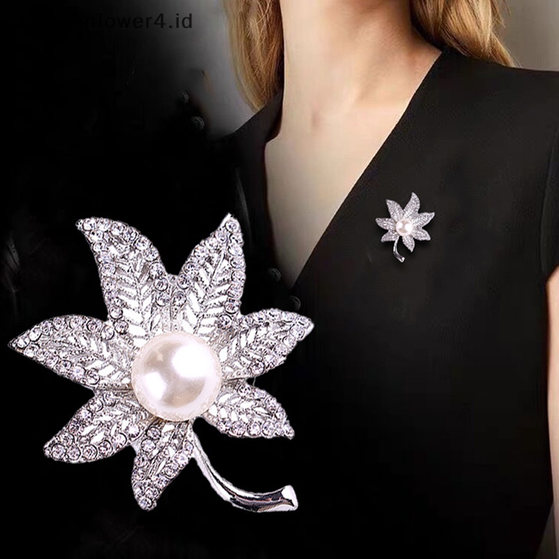 Aksesoris Fashion > Aksesoris Tambahan > Bros & Pin > {rippleflower4.id} Bros Bunga Daun Maple Mutiara Brooch Pin Untuk Wanita Buket Sweater Syal Pakaian Korsase Perhiasan Hadiah~