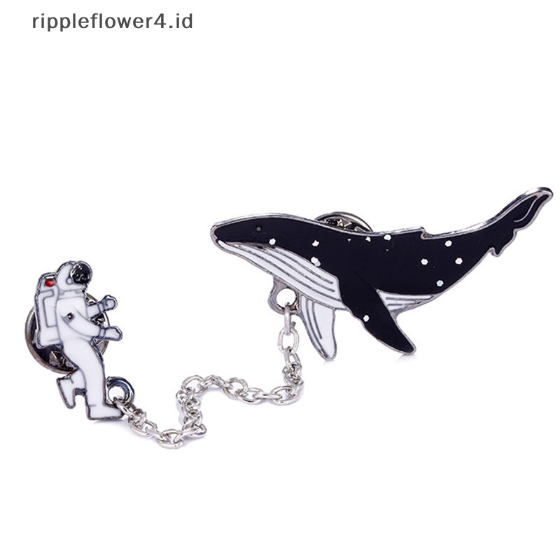 {rippleflower4.id} Enamel Kerah Luar Angkasa Astronot Pin Bros Ikan Paus Kartun Lencana Booch Lady Jewelry~