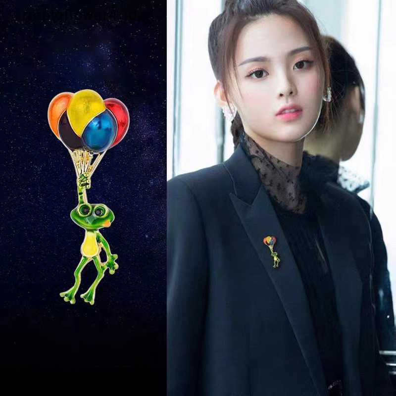 Detail {rippleflower4.id} Kodok Hidup Memegang Balon Warna-Warni Bersepeda Kodok Bros Lucu Hijau Hewan Kecil Bros Pin Aksesoris Pesta Hadiah~