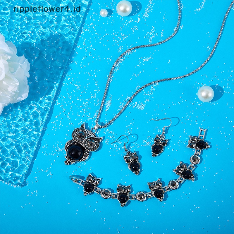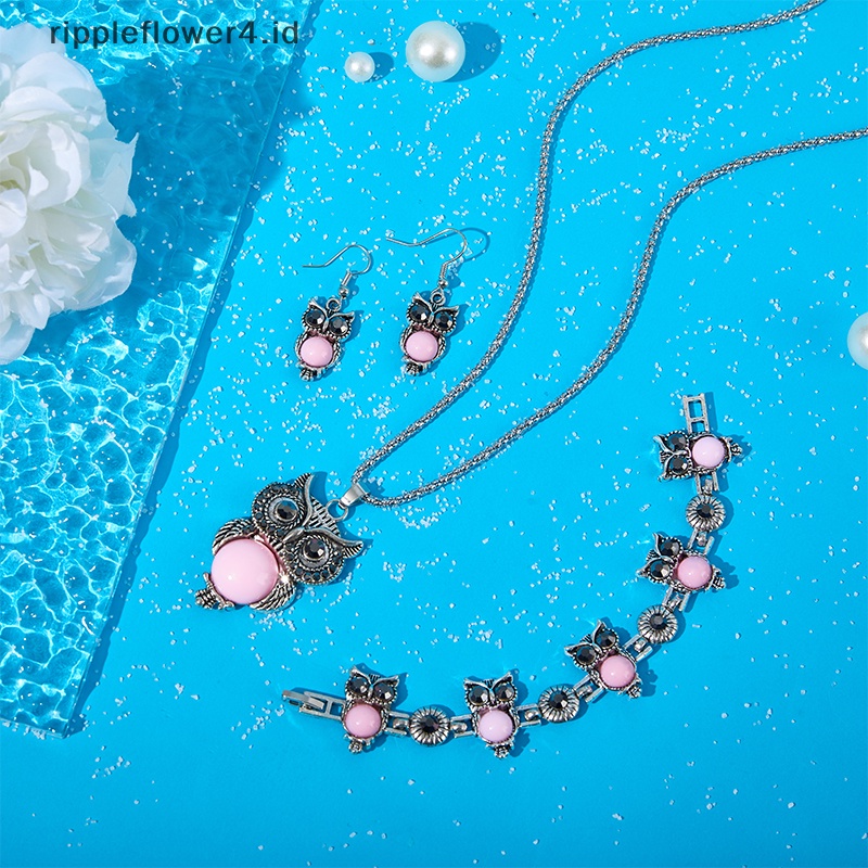 Aksesoris Fashion > Kalung > Kalung Lainnya > {rippleflower4.id} Set Perhiasan Gelang Anting Kalung Burung Hantu Vintage Perhiasan Hias Pirus Untuk Hadiah Ulang Tahun Wanita~