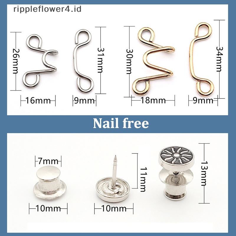 {rippleflower4.id} Wanita Rok Celana Jeans Adjustable Pinggang Klip Logam Pin Aksesoris Pakaian Jahit Wanita Bros Set Mengencangkan Pinggang Bros~