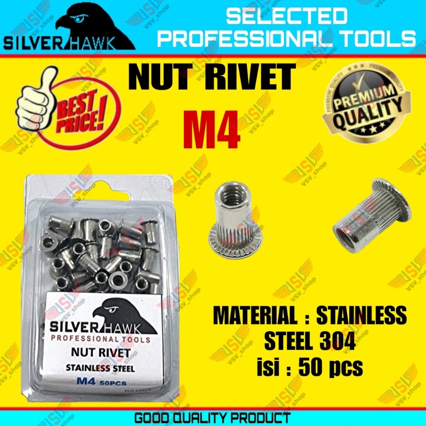 Detail Rivet Nut M4 GALVANIS/STAINLESS STEEL/ALUMINIUM Mur Rivet Tanam Rifnut Nutsert