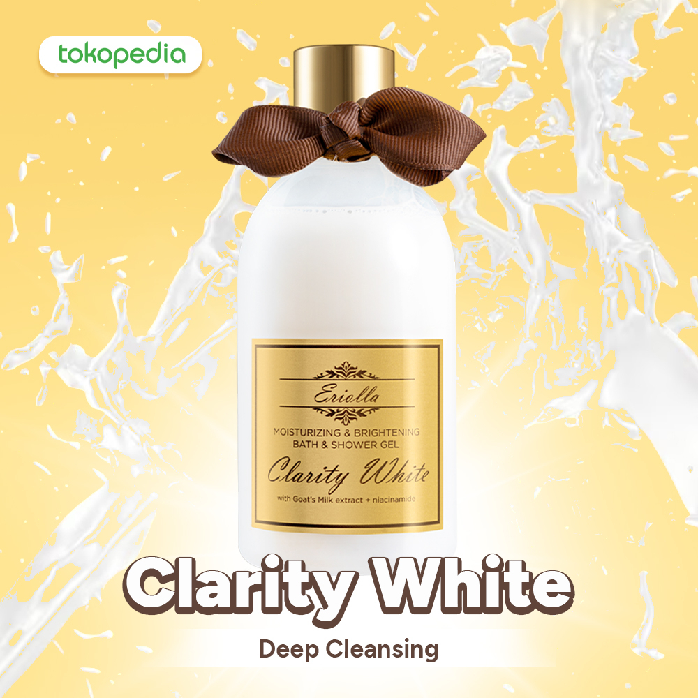 1. Clarity White With Goat's Milk extract + niacinamide Size 250ml Manfaat & Kandungannya: - Vitamin A Untuk penyembuhan luka & pertumbuhan kembali kulit - Probiotics mencerahkan kulit secara optimal - Mencerahkan, melembapkan, dan menutrisi Kulit - Memperlambat penuaan dini - Mengurangi garis halus & keriput - Menghilangkan noda hitam - Mengatasi Jerawat - Melindungi Kulit dari radikal bebas polusi & matahari
