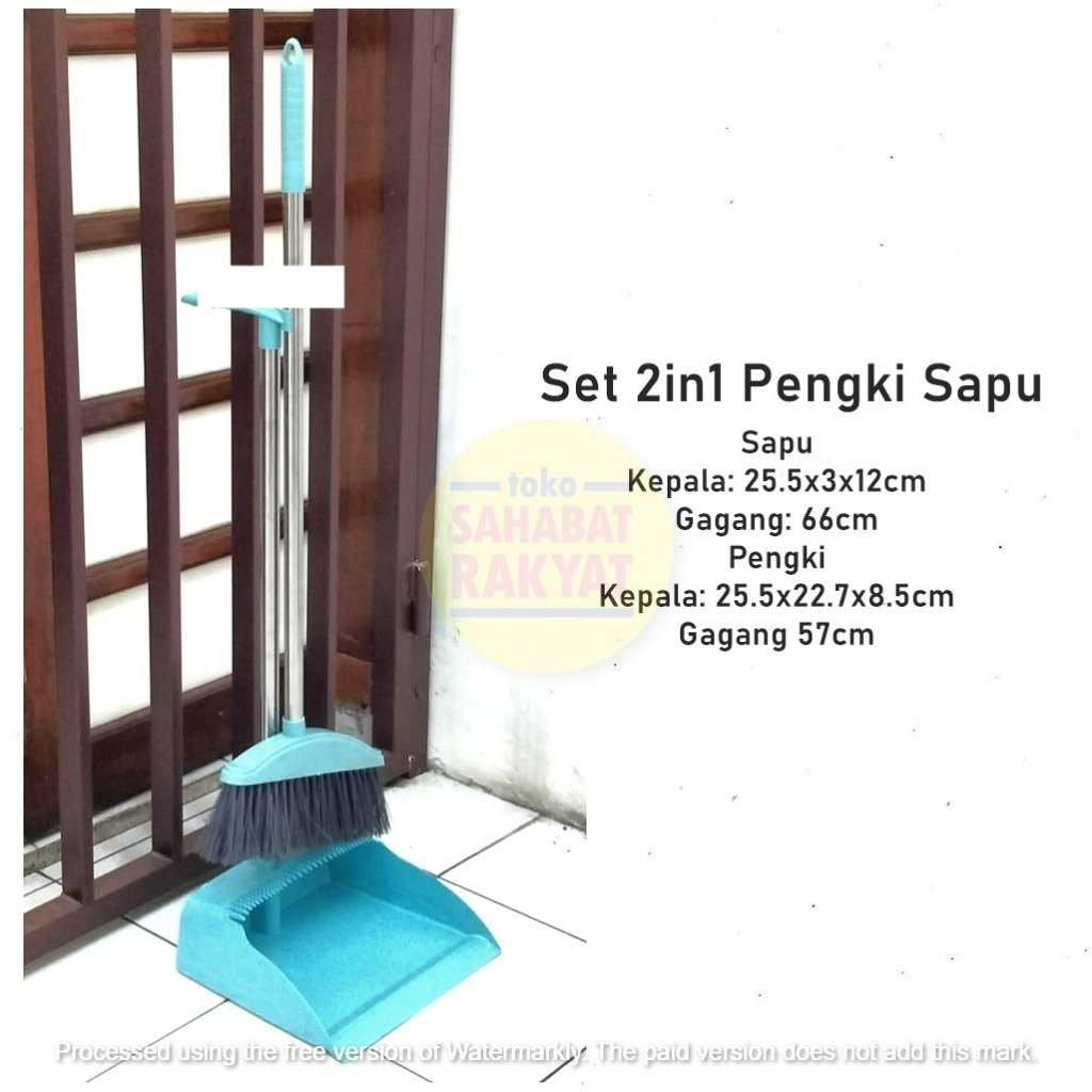 Bahan: plastik/stainless โข uk. sapu ~ kepala 25.5x3x12 cm ~ gagang 66 cm ~ 170 gr โข uk. pengki ~ kepala 25.5x22.7x8.5 cm ~ gagang 57 cm ~ 215 gr - berat set 385gr