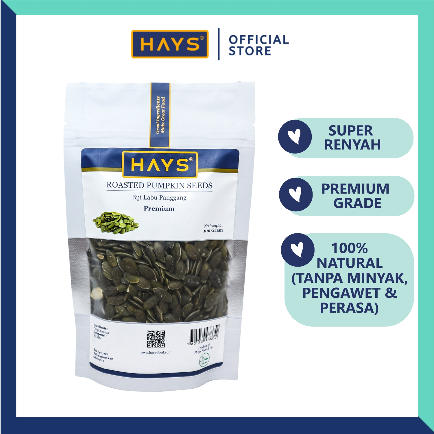 HAYS - Roasted Pumpkin Seeds / Biji Labu Panggang Berat Bersih : 100 Gram Sudah dipanggang, siap untuk dikonsumsi Kualitas Premium