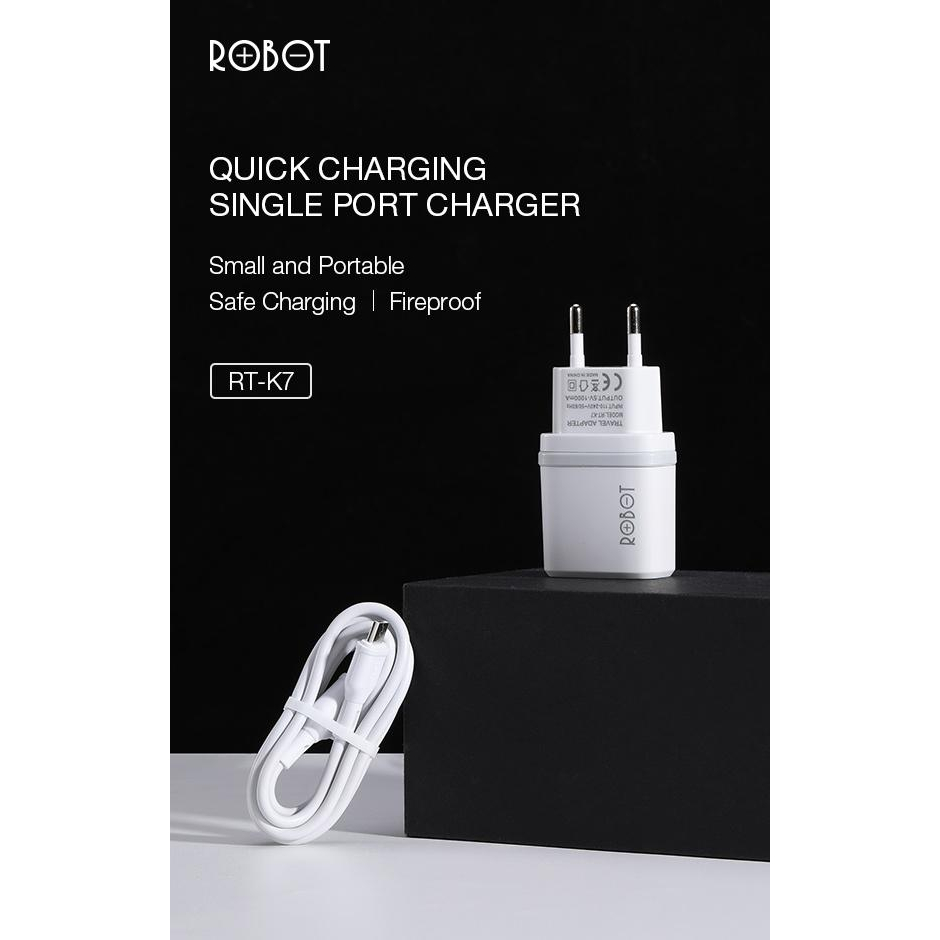 Detail Robot Charger RT-K7 Fast Charging Kabel Micro USB Original Casan Quick Charge Dual - Garansi 1 Tahun