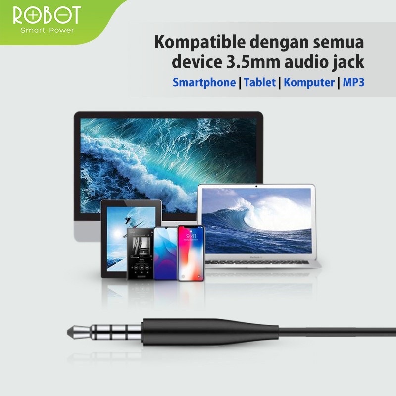 ORIGINAL DAN BARU EARPHONE ROBOT RE801 Keunggulan: 1. Ergonomic design, nyaman dan tidak sakit saat dipakai 2. One-click operation, 1 tombol untuk memainkan musik, panggilan, dan mikrofon 3. Ultra bass dynamic driver 10MM, Driver tipis dan kuat, tingkat bass hingga 99% 4. Kabel tebal, menjaga pengiriman signal dan kualitas suara 5. Kabel TPE elastis, halus, kuat, anti kusut, dan tahan lama 6. Kompatibel dengan semua perangkat antarmuka 3.5MM, seperti smartphone, tablet, komputer, MP3 dan perangkat lainnya