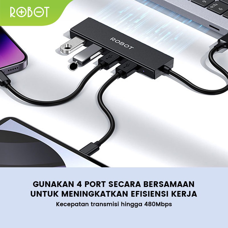 Komputer & Aksesoris > Aksesoris Desktop & Laptop > USB HUB & Card Reader > ROBOT H130-80 4 Ports USB HUB 80cm Portable Multi Function Original - Garansi Resmi 1 Tahun