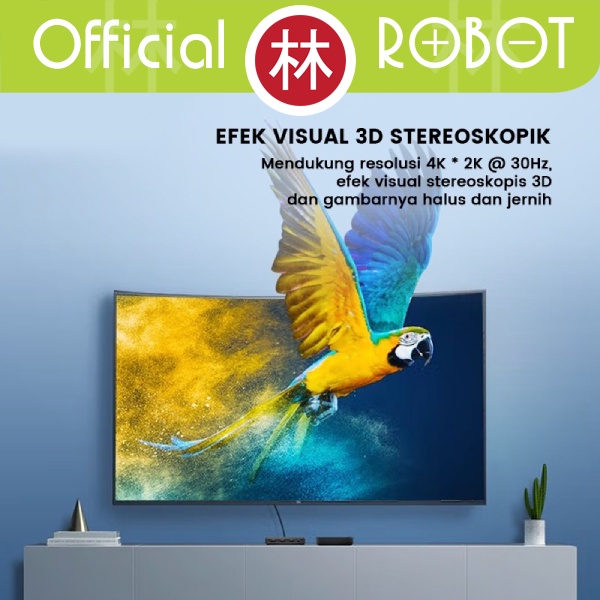 Detail Robot HM203 HDMI Splitter 1 in 2 out Split Screen Tampil Bersamaan 4K