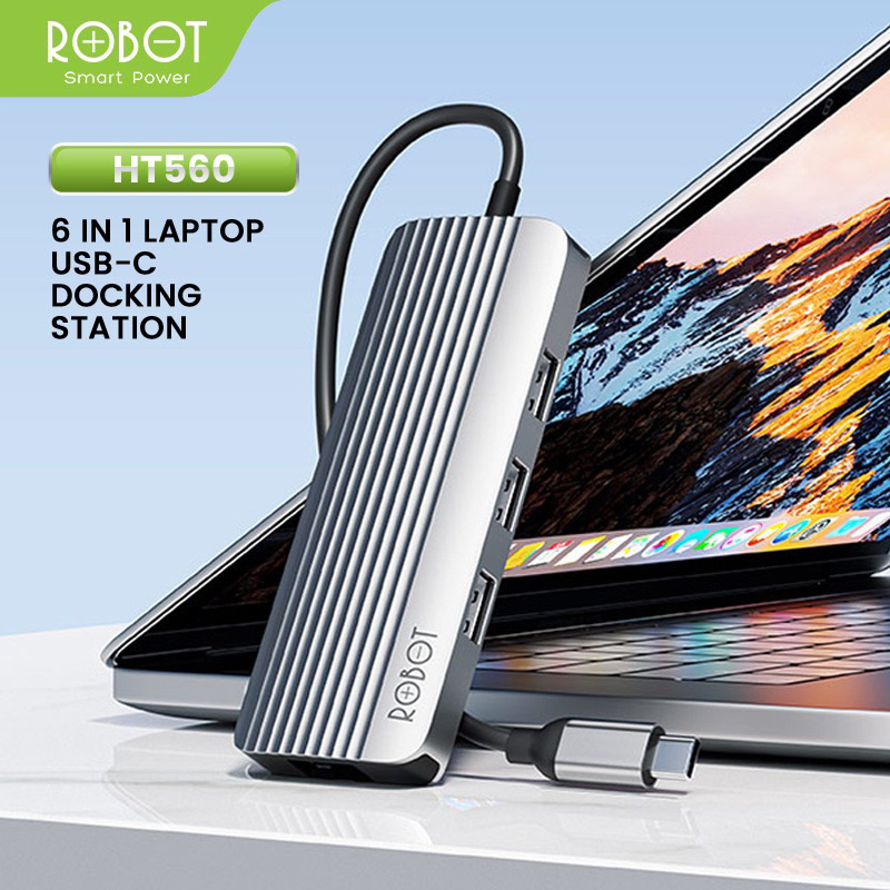 Detail ROBOT HT560 6 in 1 USB C USB Hub Adapter Garansi 1 Tahun