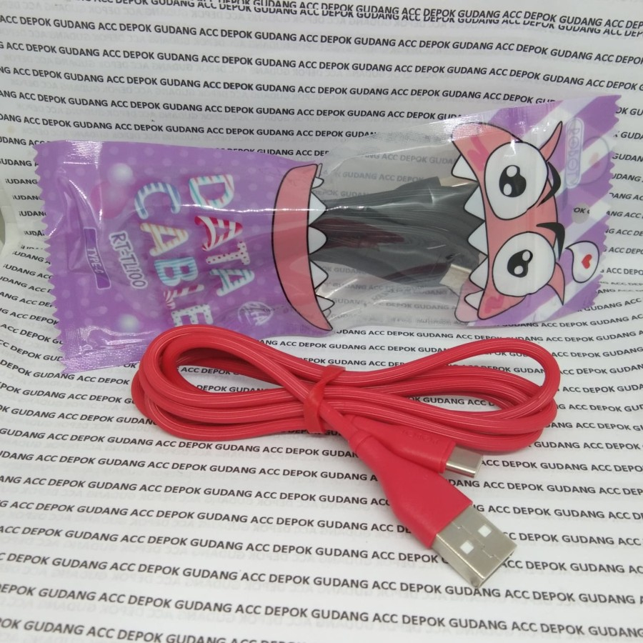 Robot Data Cable RT-CD100 Colorful Keunggulan Data Cable RT-CD100 : 1. Kartun menarik banyak pilihan warna, dibungkus seperti bungkus permen dengan kartun menarik,ringan dan tipis, banyak pilihan warna. 2. Mengisi daya lebih cepat dan stabil, kabel inti dengan tembaga murni bebas oksigen dan dilindungi berlapis-lapis kecepatan yang stabil. 3. Mendukung fast charging 2A, dengan arus fast charging yang lebih besar dan mengisi daya lebih hemat waktu. 4. Dapat mengisi daya dan transfer data 2 in 1, Output yang stabil,dapat mengisi daya dan transfer data bersamaan,menghemat waktu dan tidak saling mempengaruhi Deskripsi Produk : Brand Name : ROBOT Class Name : Data Cable Model : RT-CD100 Weight : 1.365 kg
