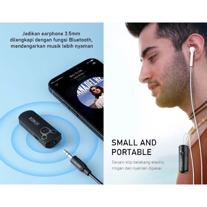 ROBOT RS-10 Bluetooth Audio Receiver With 5.0 Small&Portable AUX 3.5mm Garansi Original Resmi
