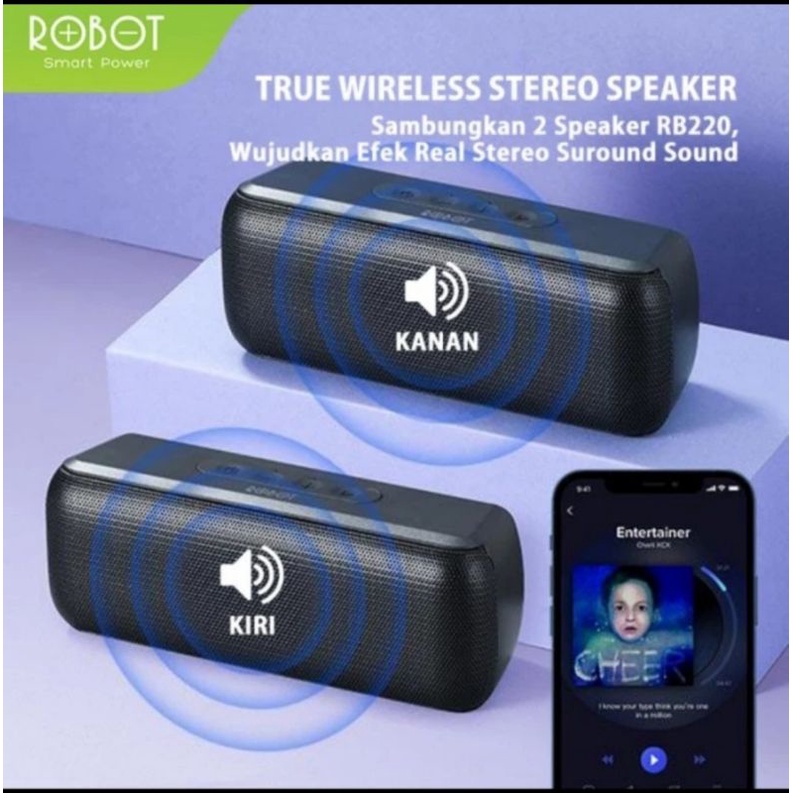 In The Box: 1 x Speaker Robot RB220 1 x Cable Charging 1 x Kartu Garansi