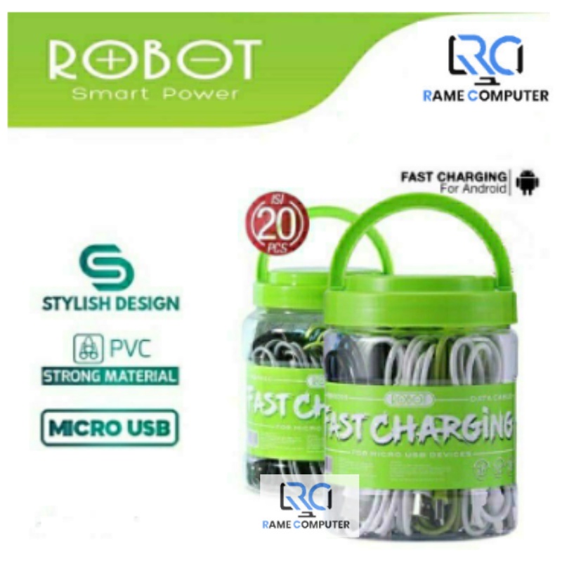 Spesifikasi : Brand : Robot Current : 2.A Material : PVC Lenght : 1M Amount : 1 Toples ini 30 Pcs Color : White , Grey , Black , Blue , Green