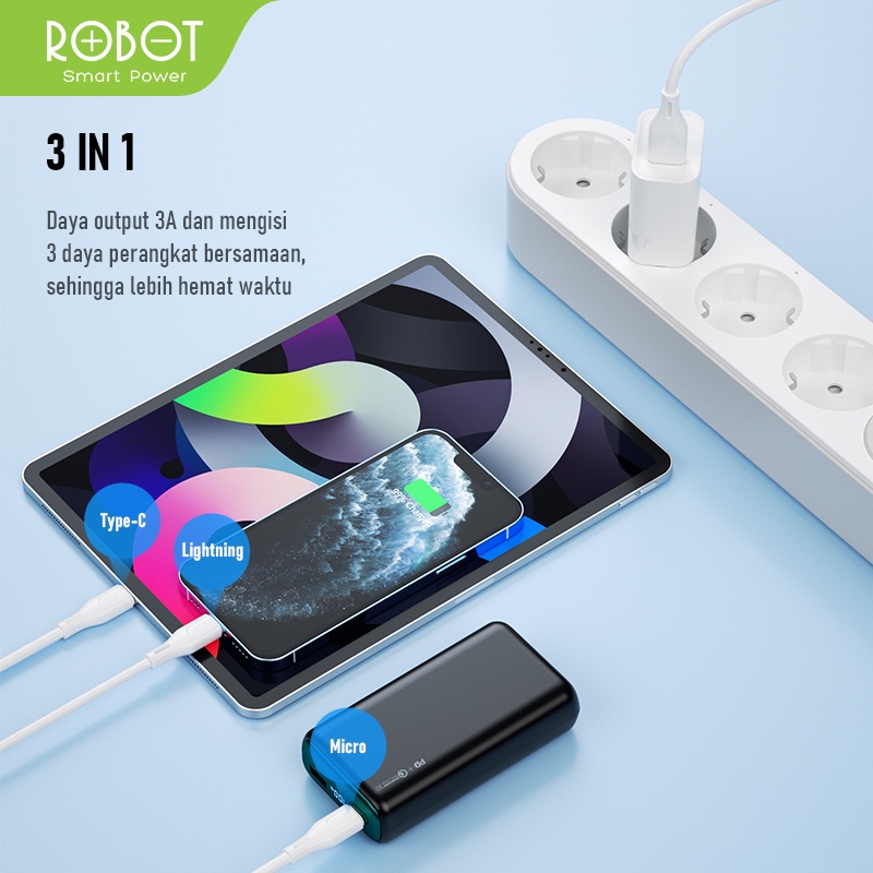 Handphone & Aksesoris > Kabel, Charger, & Konverter > Kabel & Adaptor Handphone > ROBOT RDY120 Kabel Data Fast Charging 3 in 1 Type-C / Micro Lightning Data Cable Original - Garansi Resmi 1 Tahun