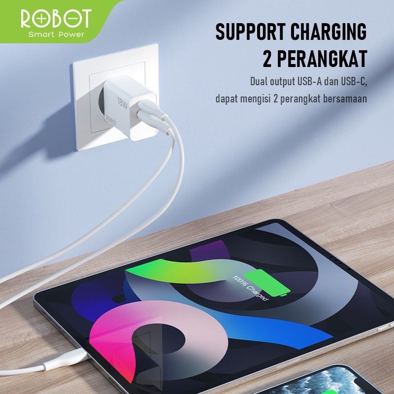 Detail (Robot RF2) Original Adaptor Kepala Charger 18W QC3.0 + PD Fast Usb C Adapter Charger Robot Compatible XR/ XS Max/ 11 Pro
