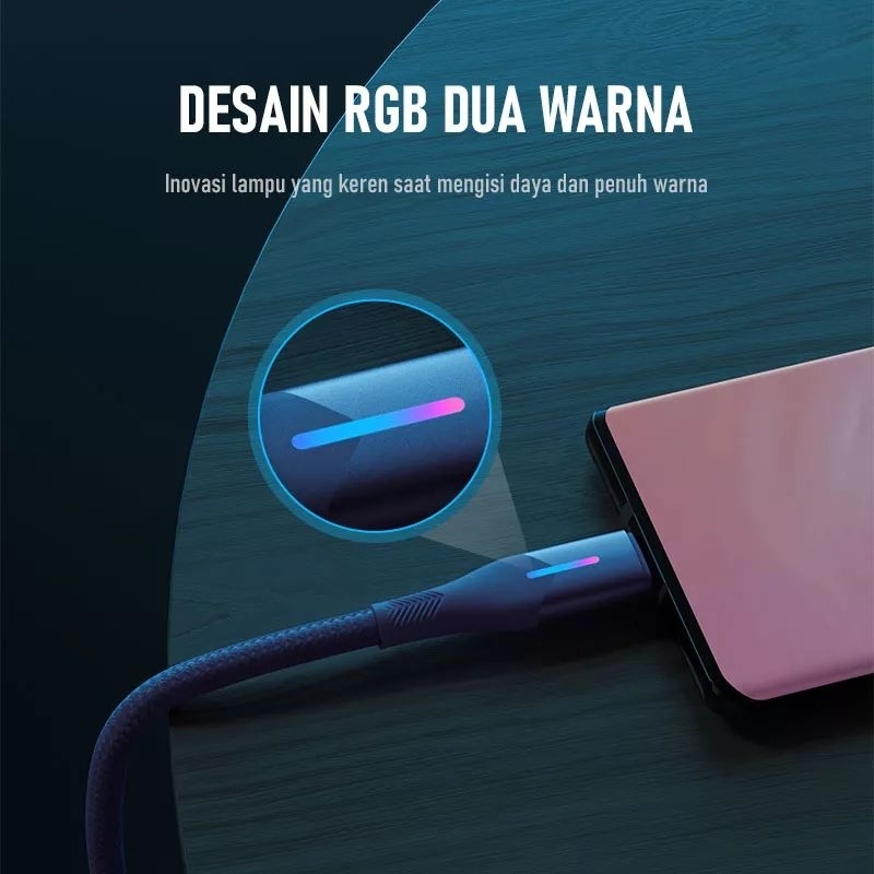 1. Braided kabel fast charging RGB 2 Warna 2. Konektor kuat dan tahan lama 3. Desain kabel braided dengan lapisan pelindung TPE yang nyaman disentuh, tidak mudah kusut dan tahan tarikan 4. Fungsi 2in1, dapat mengisi daya dan transmisi data bersamaan lebih efisien 5. Kompatibel sepenuhnya dengan perangkat antarmuka micro
