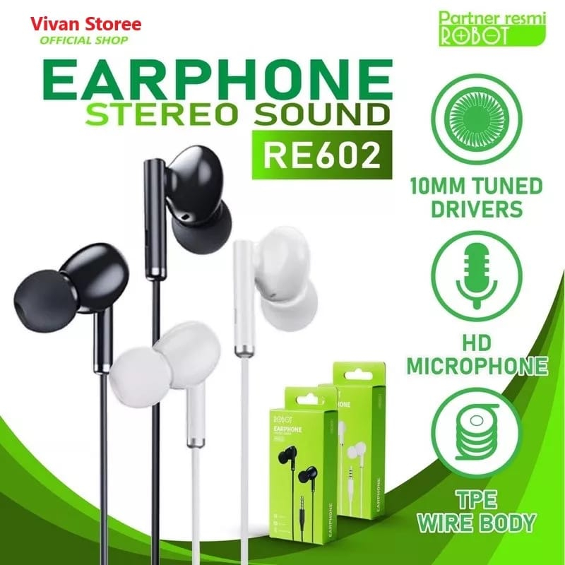 Robot Wired Headset RE602 Handsfree Super Bass Earphone Garansi Original Resmi CATATAN : Untuk meningkatkan keamanan selama pengiriman kami himbau untuk atc/beli extra packing yang sudah kami sediakan di etalase toko jika tidak maka akan kami packing sesuai dengan standar toko menggunakan plastic bag