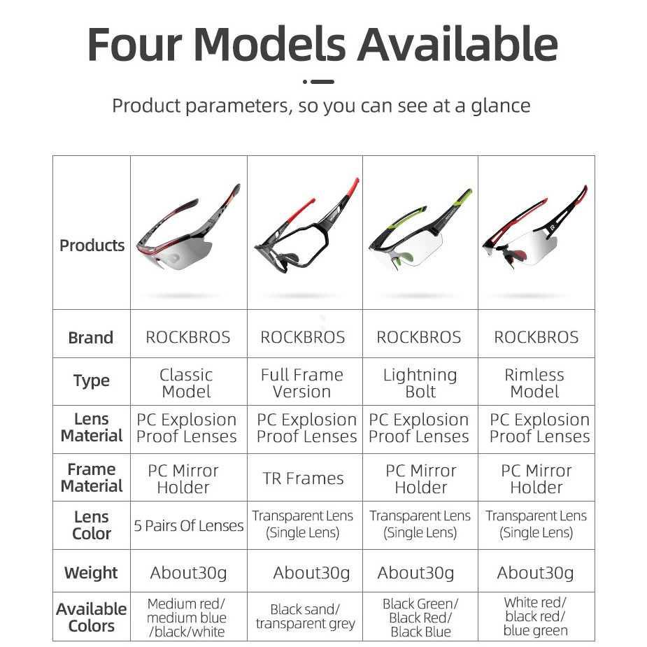 Spesifikasi ROCKBROS Kacamata Sepeda Olahraga Lensa Photochromic Full Frame 10161 Jenis Lensa : Lensa Photochromic Material : Frame Material: Polycarbonate