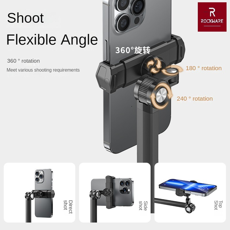 Dimensi produk: Base: 28 x 28 cm Rod: 54.5 cm (Expandable up to 98 cm) Phone Holder: 6.8 cm (Expandable up to 9.8 cm) Tablet Holder: 13.5 cm (Expandable up to 23 cm)