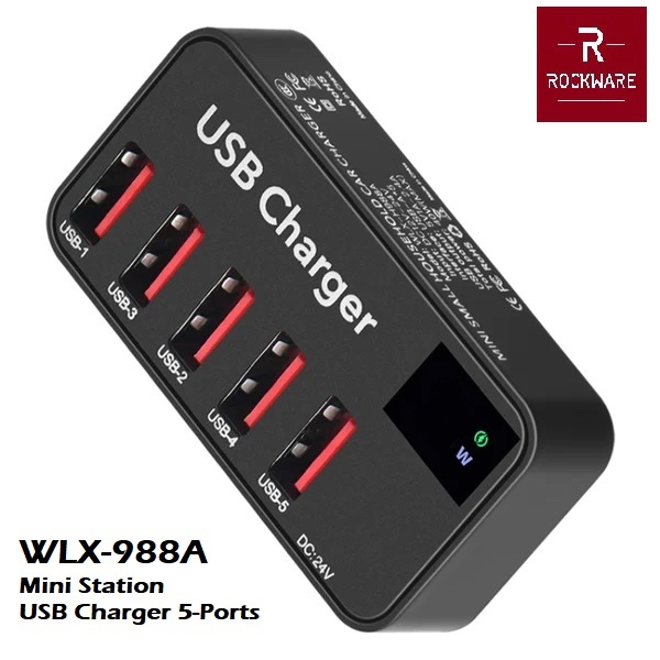 Specification Product Name: Mini Small Household USB Charger Product Model: WLX-988A Input: DC 24V Interface: 5x USB-A Output: 5V/1A~2.4A Total Power: 40W MAX