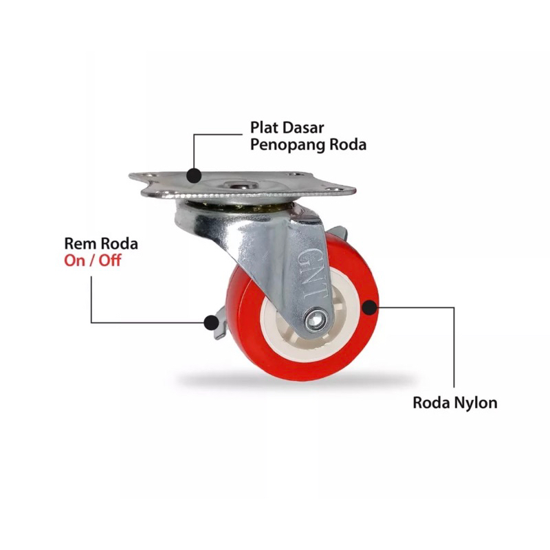 Detail Roda caster estalase pu 2” rem hidup 1pcs merah