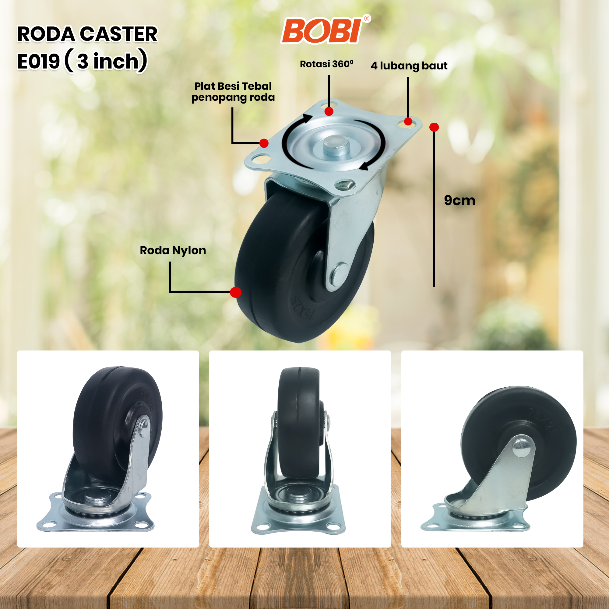 Detail Roda Caster PVC NYLON / Roda Etalase Lemari 3 inch / Roda Serbaguna BOBI - Warna Random
