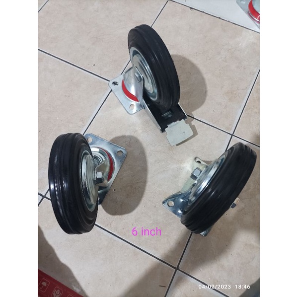 - Ukuran 6 inch - Double Bearing yang di pasang bagus sehingga lebih kuat - Roda Hitam berbahan Rubber - Kapasitas : 150Kg / Roda