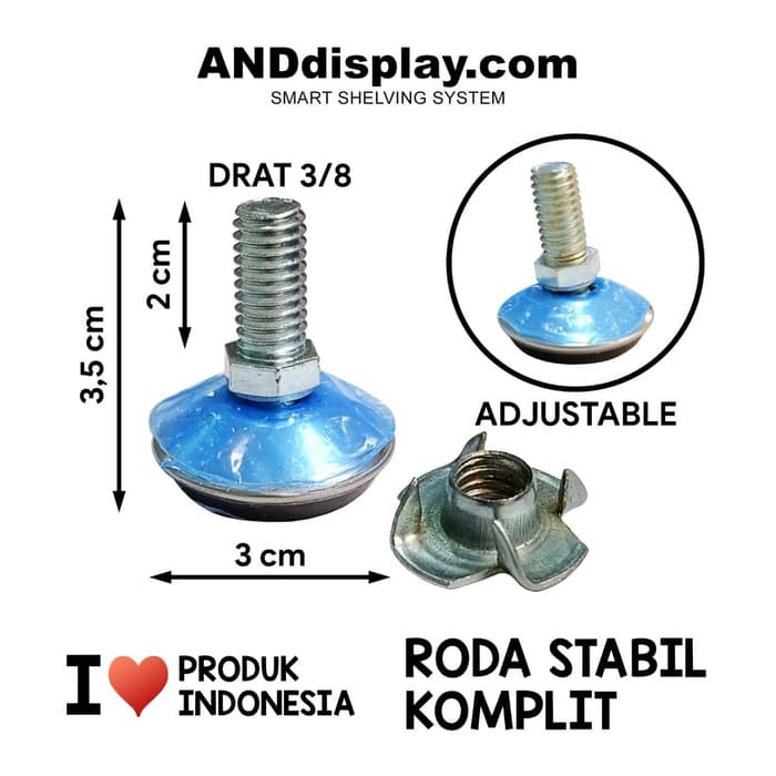 UKURAN DRAT 3/8 PANJANG DRAT 2CM DIAMETER KAKI STABIL 3CM / 30MM TINGGI KAKI STABIL 3,5CM -DISERTAI MUR CAKRAM-
