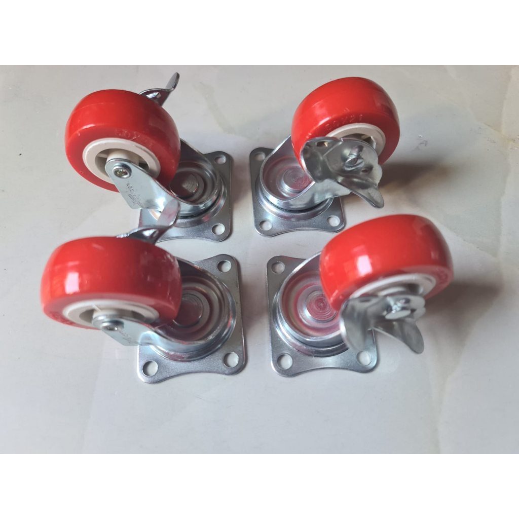 Roda Trolley Material : Poliurethane Ukuran : 2" ( 50mm ) tipe : Hidup /muter dan sites Rem Ukuran Alas roda : P X L ( 58X46mm) Panjang Keseluruhan : 63 mm