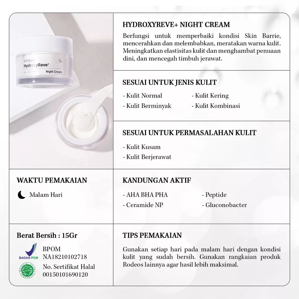 RODEOS HydroxyReve+ Night Cream Ukuran : 14gr No BPOM : NA18210102718