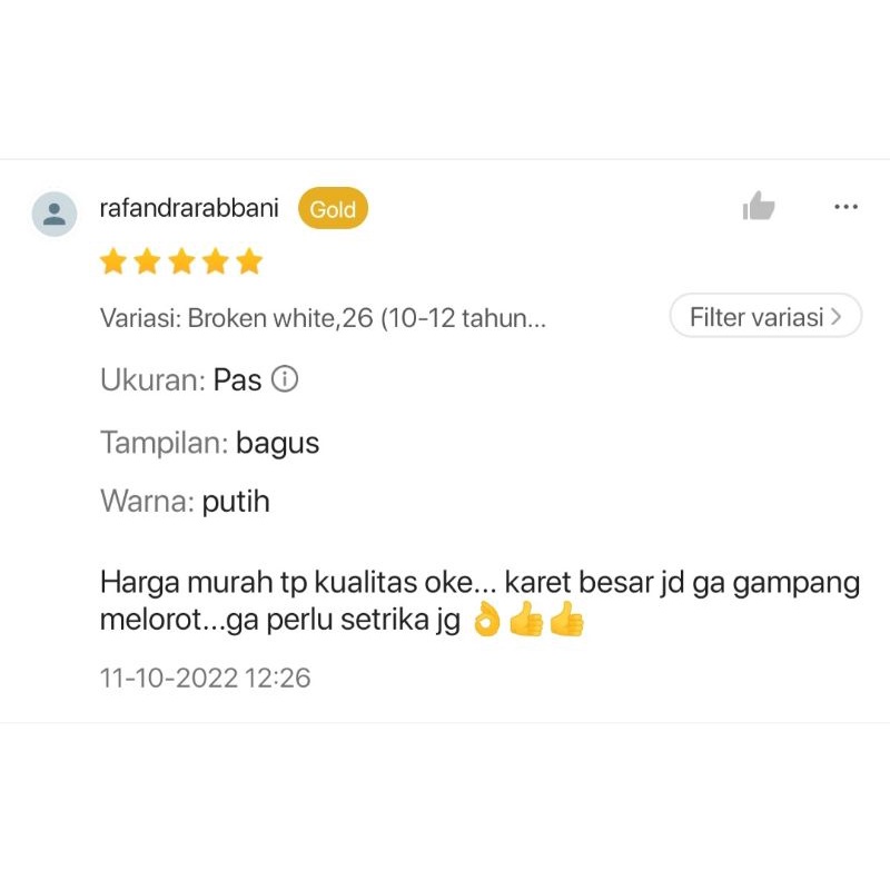 size 28 (15- dewasa) panjang 90-93 cm (toleransi pemotongan masal)
