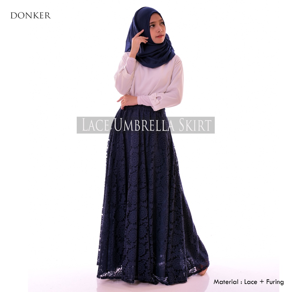 Detail Rok Hitam Panjang Pesta Muslimah Lace Umbrella Skirt Rok Flare Rok Brukat Griyaraditya Almira