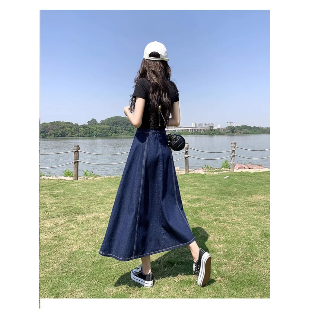Rok jeans panjang wanita Rok maxi jeans rok plisket jeans Import Denim Rok kekinian 2023 Korean Style Rok Jeans Stretch Span