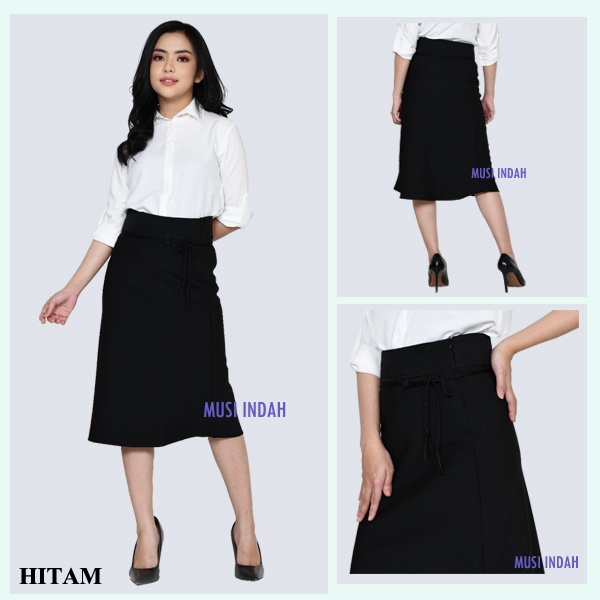 Detail Rok Kerja Kantor Pendek Midi Skirt Model A line 7 8 Hitam Polos Wanita Bahan Formal Import High Premium Quality