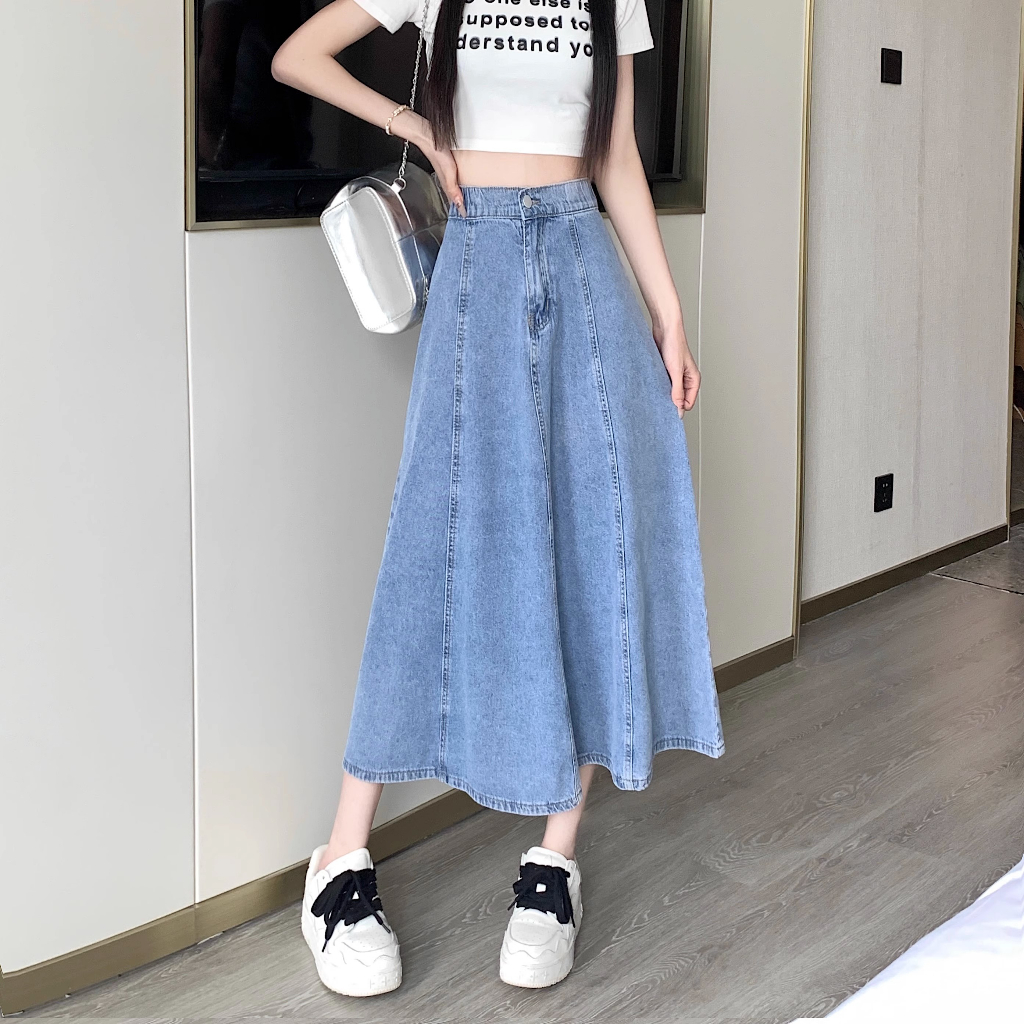 Rok korea style sepan rok Jeans Panjang Wanita Rok Jeans Stretch Span Denim Rok midi melar rok jumbo bigsize muslim fashion ootd