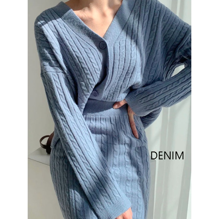 Your browser does not support the video tag.Video perkenalan produk Rok maxi knit skirt motif cable dan cardigan set. Sumber: Shopee.