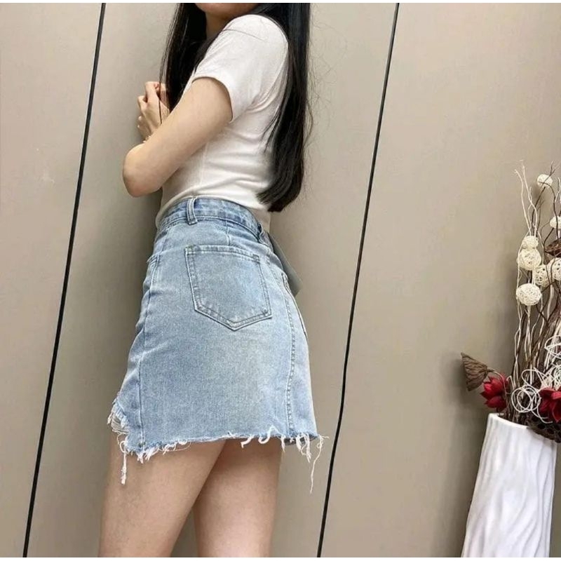 Detail ROK MINI RAWIS BAWAH JEANS WANITA KOREA GAGAL FOKUS