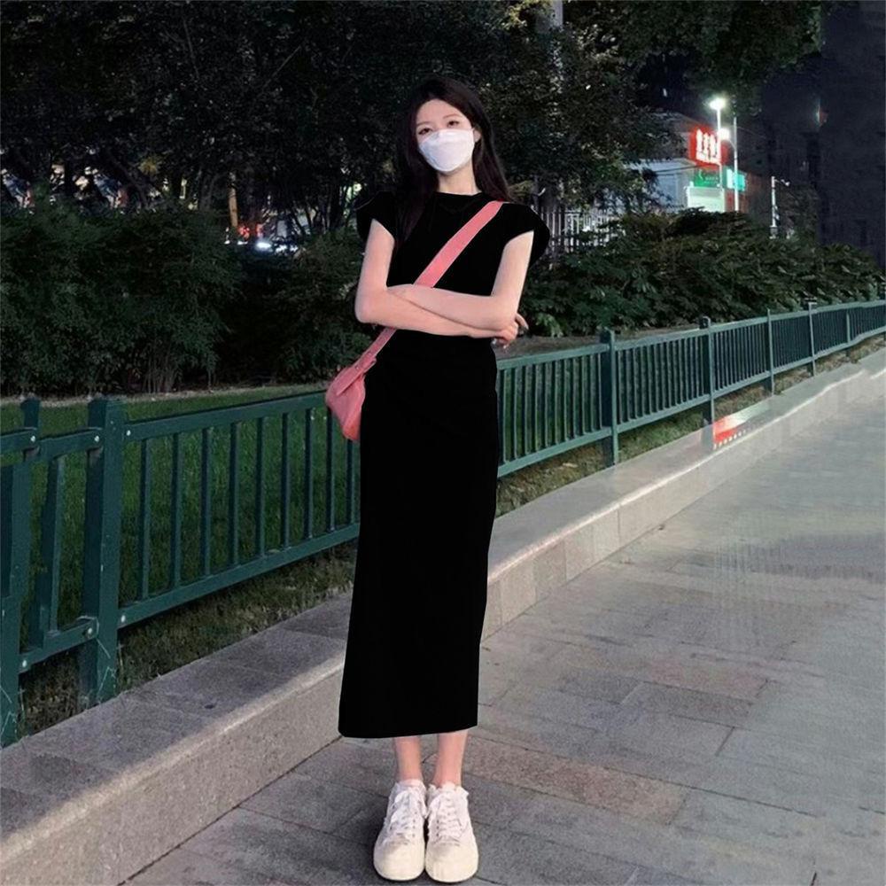 Detail Rok Panjang Gaya Barat Tampak Muda, Bawahan Lurus Berbalut Pinggul Ketat KasualTDress Kaos Musim Pan